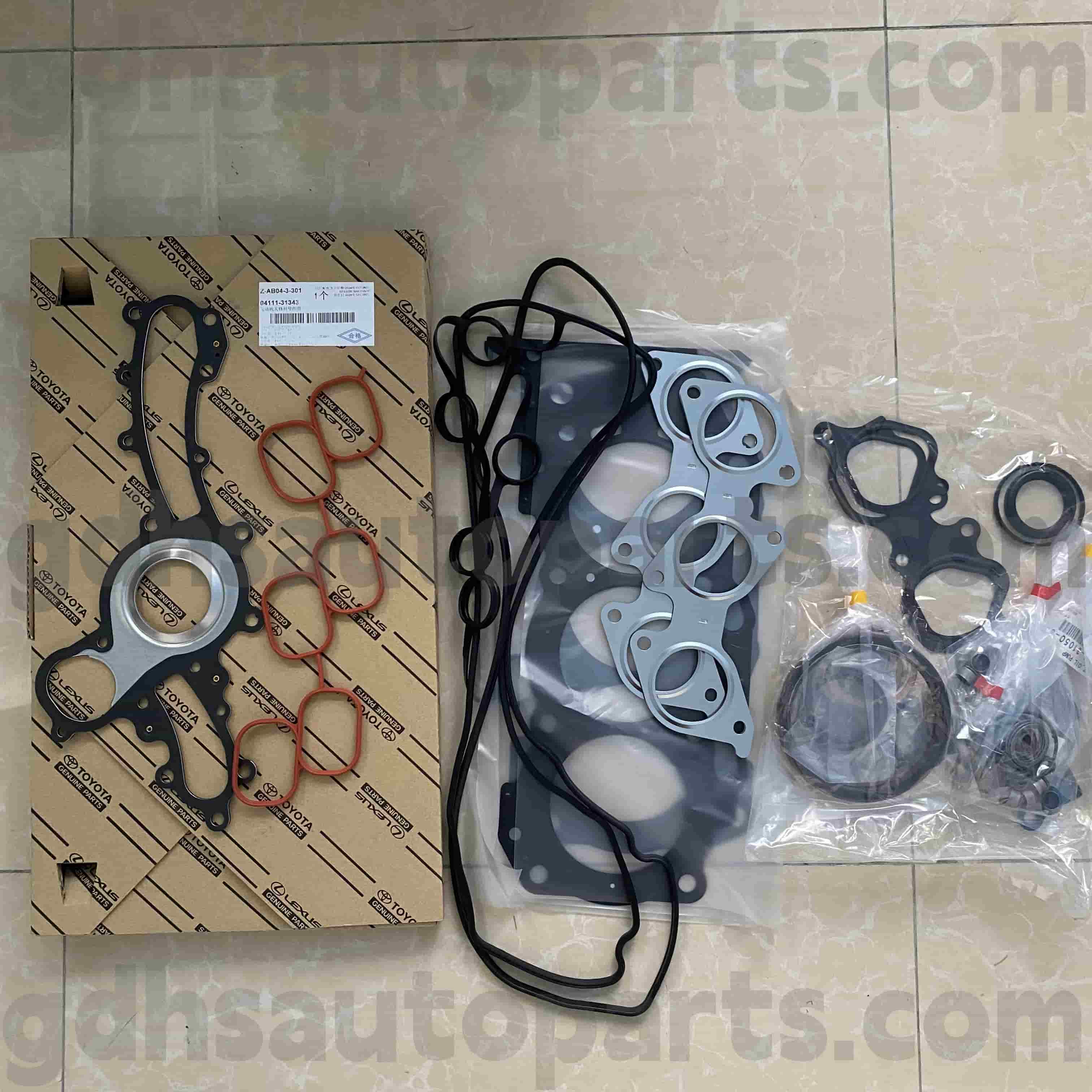 Toyota äkta delar 04111-31343 Motoröversyn för Fortuner, Hilux, Land Cruiser Prado. Vi är distributörer och grossister av original- och OEM -delar för stora bilvarumärken. Vår produkt är hög kvalitet och billigt pris. Vi har rabatt för grossist.